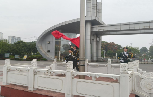 现场全体人员肃立,向国旗行注目礼,高唱国歌,表达着对祖国的深深热爱和美好祝福。