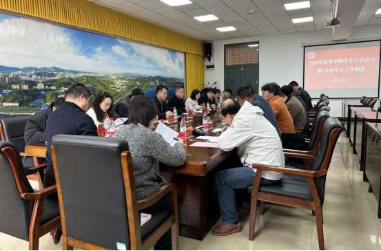 会上,传达学习了教育部2026新春第一会、省教育厅2026年新年工作调度会,省和市安全工作会议等会议精神,相关职能部门就新学期学生工作、校园安全、餐饮服务、后勤保障、挑战杯、西部计划等进行了交流和布置。