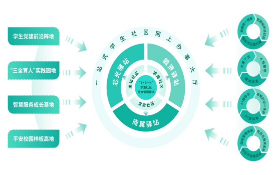 近年来,学校党委深入贯彻落实习近平总书记关于教育的重要论述,以教育部“一站式”学生社区建设要求为指导,紧紧围绕立德树人根本任务,全面实施“时代新人铸魂工程”,按照围绕学生、关照学生、服务学生的育人理念,从党建引领、队伍进驻、学生参与、文化建设、数字赋能、条件保障六个维度积极探索和实践,逐步构建具有湖理特色的1+3+N一站式学生社区综合管理模式。1个网上综合办事大厅,求实、求知、求是3个社区综合服务中心,芯光、商翼、毓贤、艺路同行等5个教学院社区驿站,美工坊、星光导航 2个辅导员工作室成为理工学子学习生活的“温馨家园”